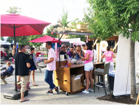 tournée de promotion des Bordeaux Blanc et Rosé. Les vacanciers ont pu se rendre sur le village éphémère pour déguster, jouer et assister à un cours d’initiation œnologique.